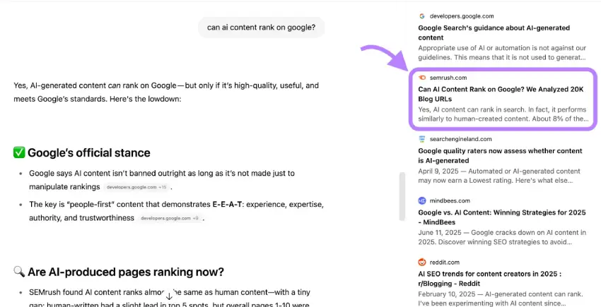 - AI دامنههای معتبر را ترجیح میدهد: رتبهبندی ارگانیک قوی و اعتبار، احتمال استناد به یک دامنه را افزایش میدهد.