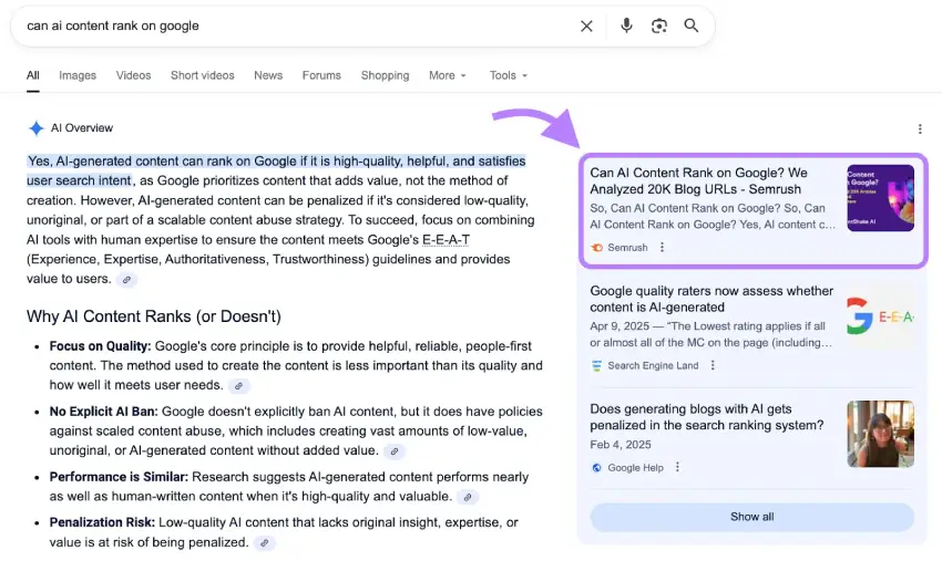 به عنوان مثال، ما تحقیقات دادههای بدیع انجام دادیم و با چندین متخصص مصاحبه کردیم تا مقاله خود را با عنوان «آیا محتوای هوش مصنوعی میتواند در گوگل رتبهبندی شود؟» منتشر کنیم.